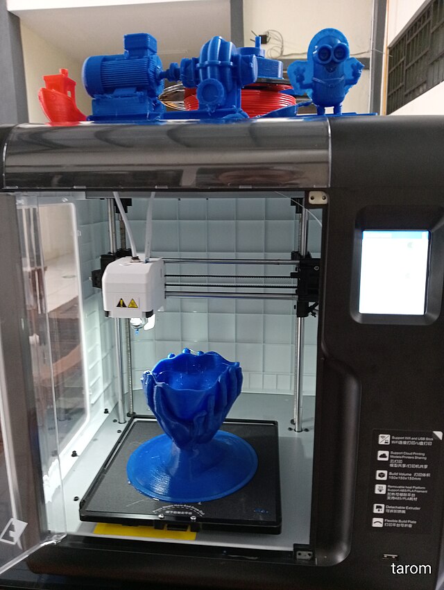 • Common materials include plastics such as PLA and ABS, metals, resins, and even food products like chocolate.