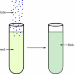 When a solute enters a solvent, the solute particles separate and become surrounded by solvent molecules