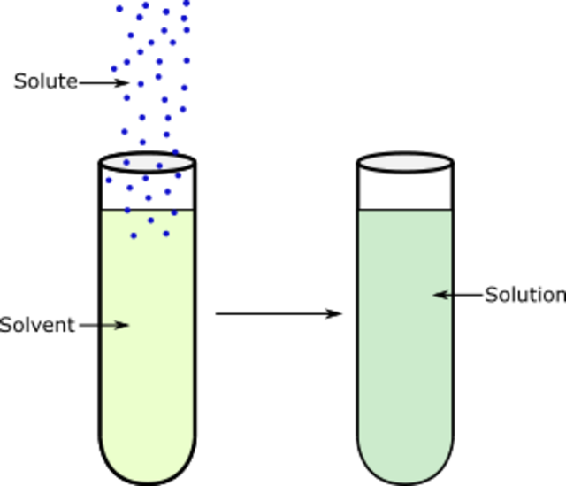 • The solute is the substance that gets dissolved (example: salt, sugar, or gas like oxygen).