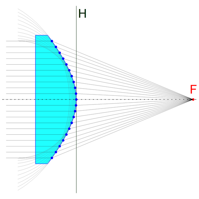 - A Fresnel lens is a thin, ring-shaped lens that focuses like a thick one. Because of its lighter weight, it’s used in lighthouses.