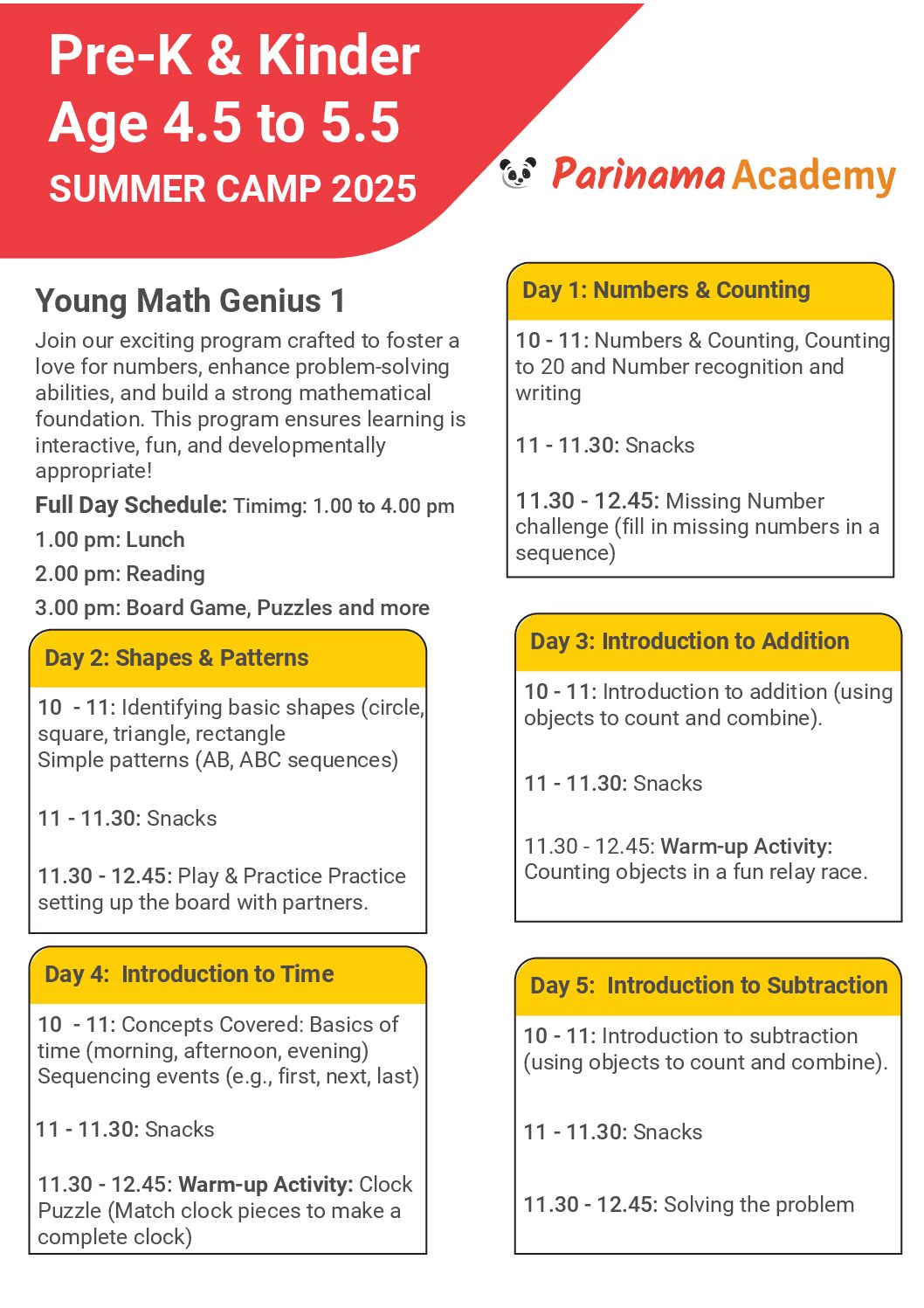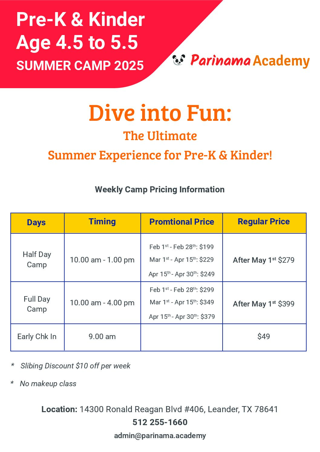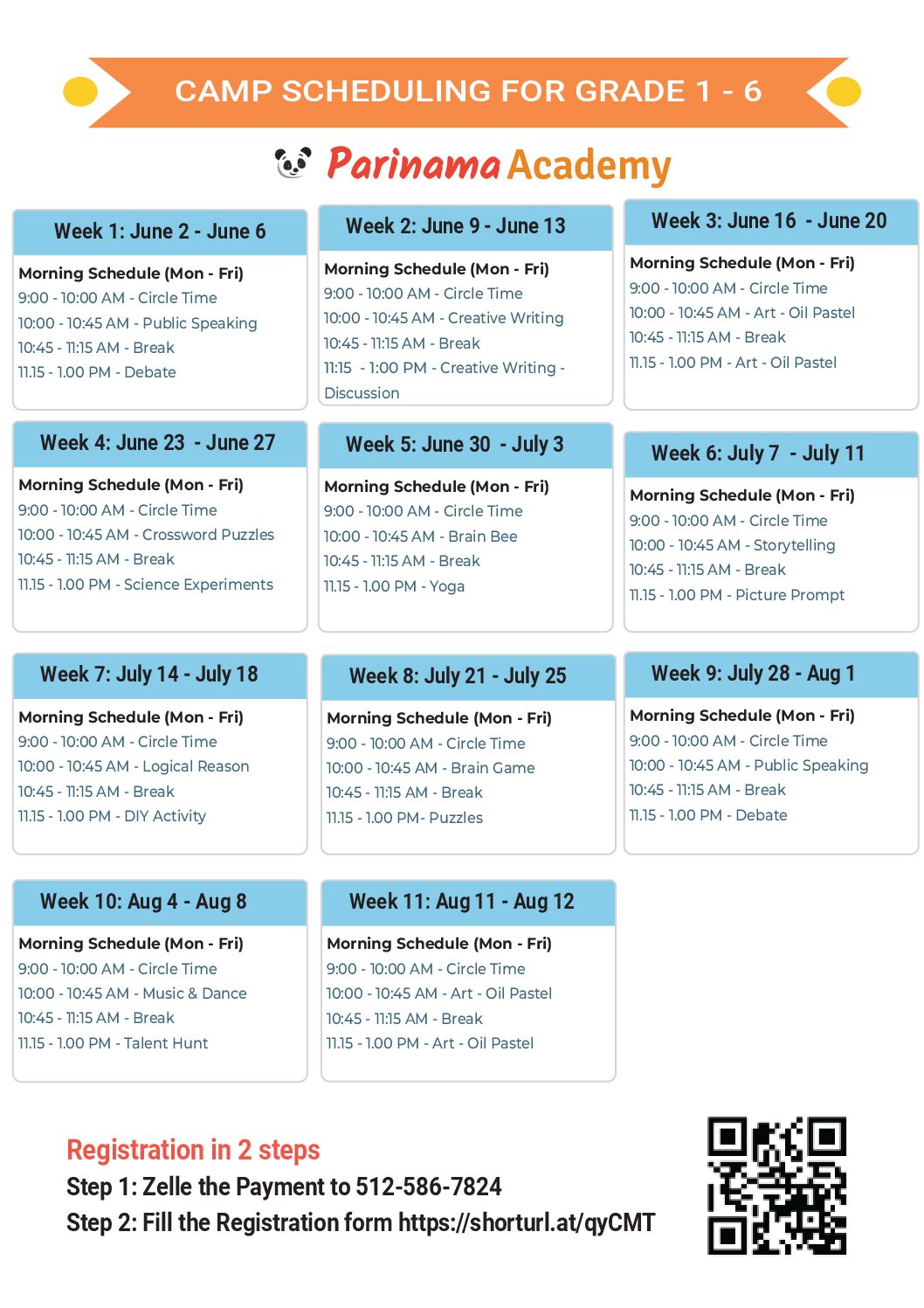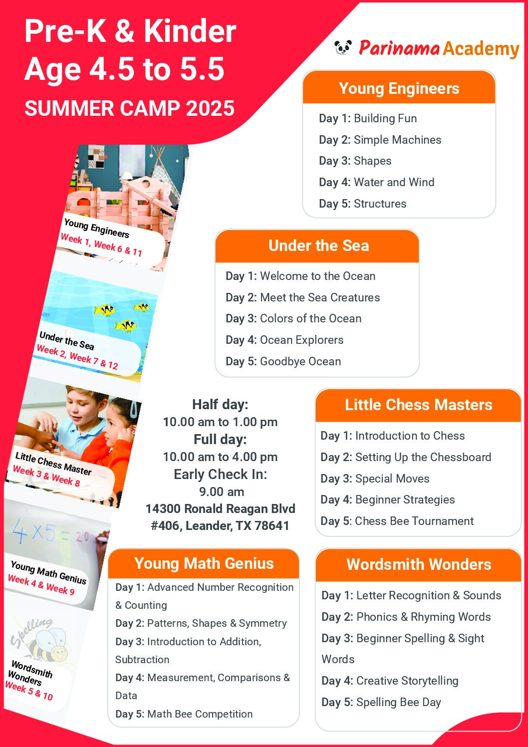 Prek (4-5) Younger kids and kids upto Grade 7 can check our Ronald Reagan location programs