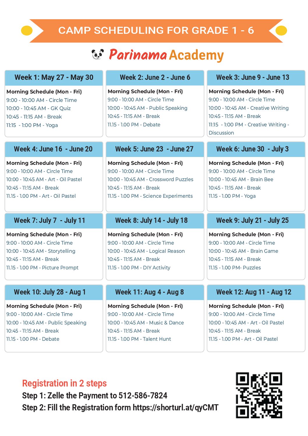 Prek (4-5) Younger kids and kids upto Grade 7 can check our Ronald Reagan location programs