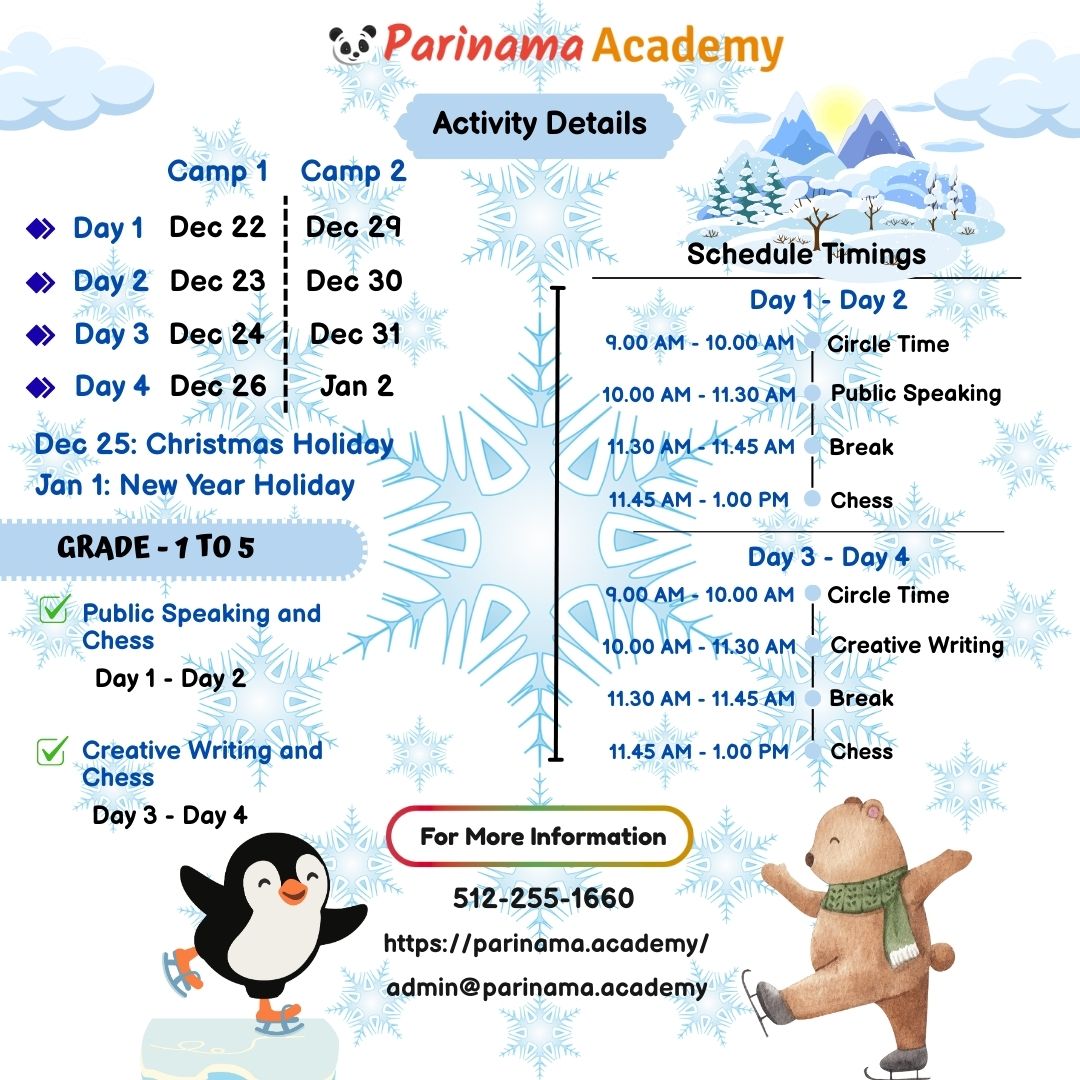 Make this winter break fun and educational with our interactive camp for Grades 1 to 5!